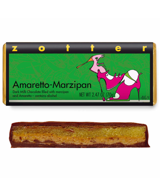 Dark Milk Chocolate filled with marzipan and Amaretto-contains alcohol