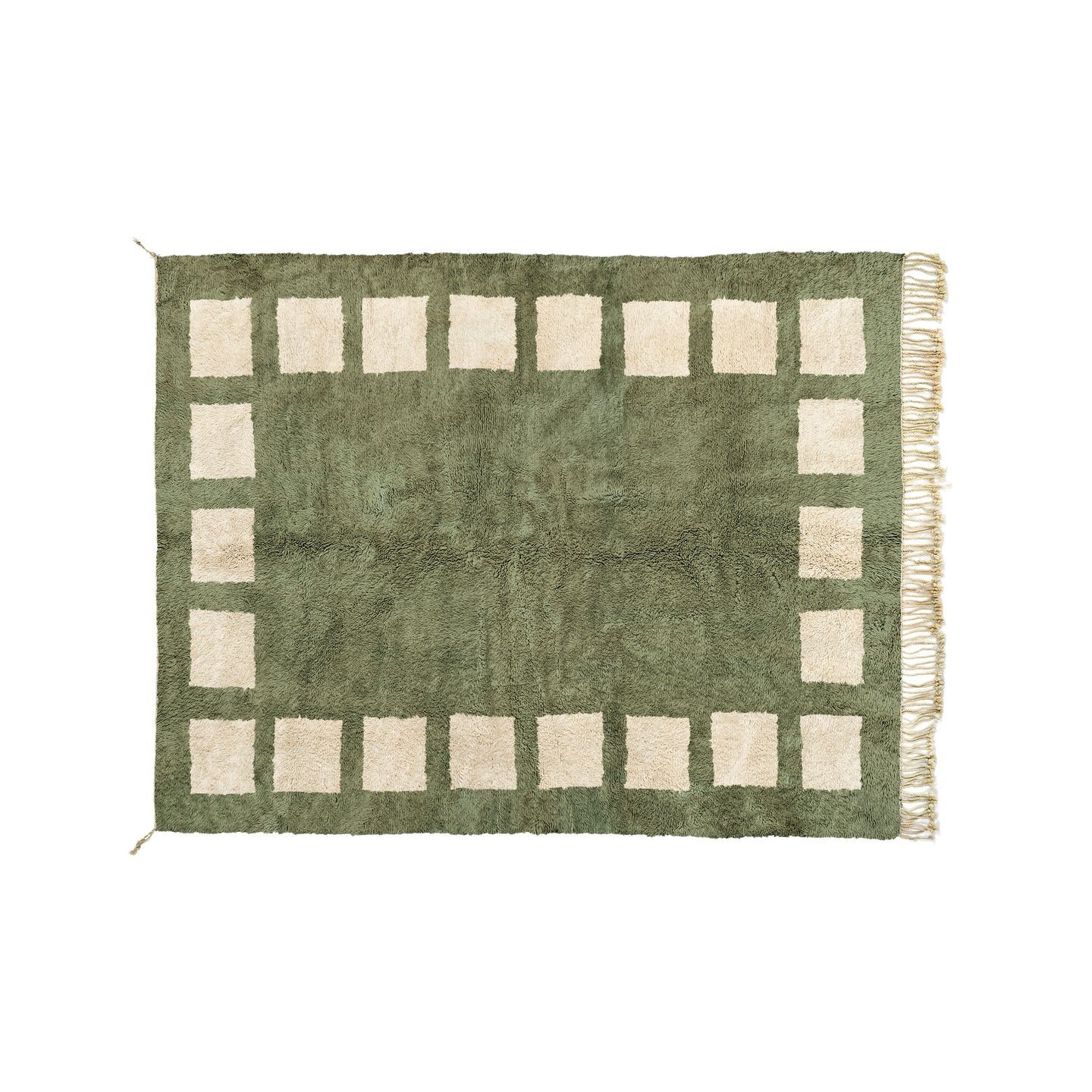 A border of slightly irregular squares breaks the symmetry of this instant classic. Available in 3 color combinations.