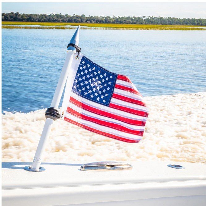 This hybrid 3′ pole is made of composite carbon fiber and has a patented locking adaptor so it will stay in place in your rod holders or rocket launchers while you run.