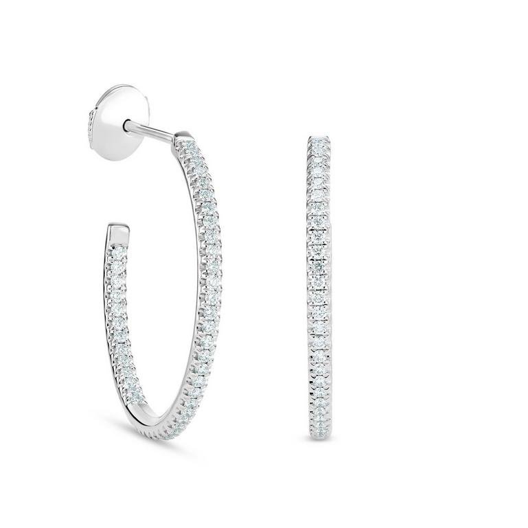 These medium hoop earrings are as contemporary as they are classic. Crafted from 18K white gold, they are set with a row of round brilliant natural diamonds. Each one is ethically sourced, selected by eye and precisely matched by our team of experts to ensure harmony and balance. The total diamond weight is ~0.51 carats, and each earring is 25.0 mm in diameter.