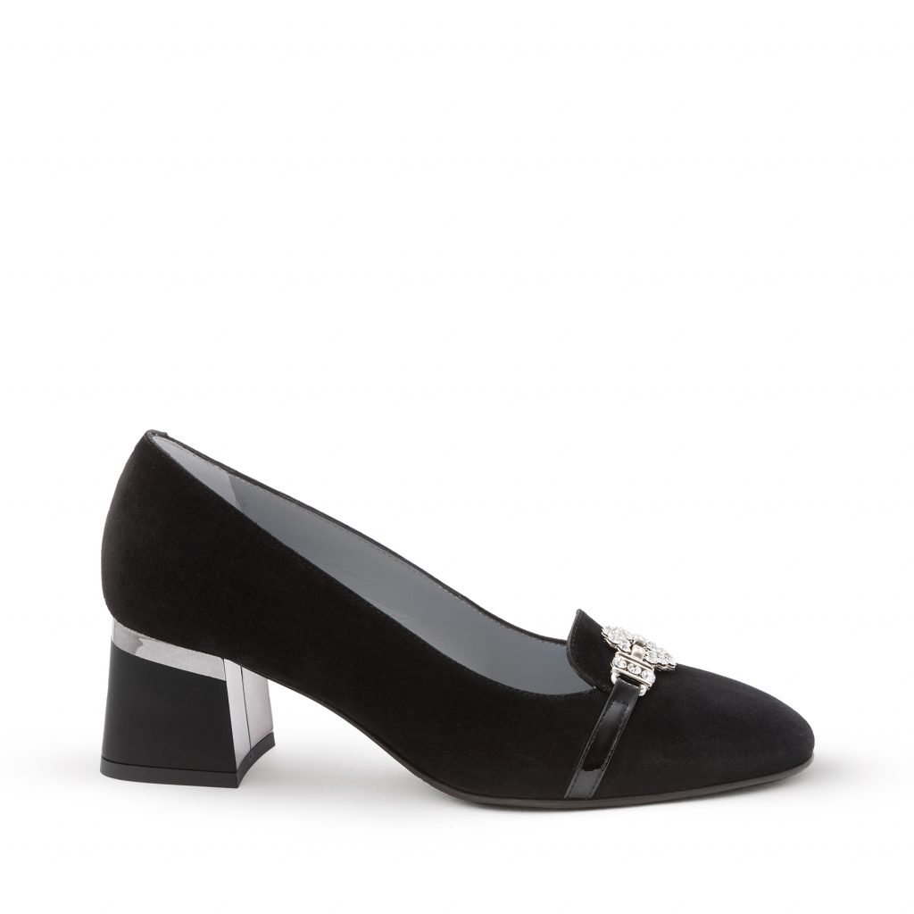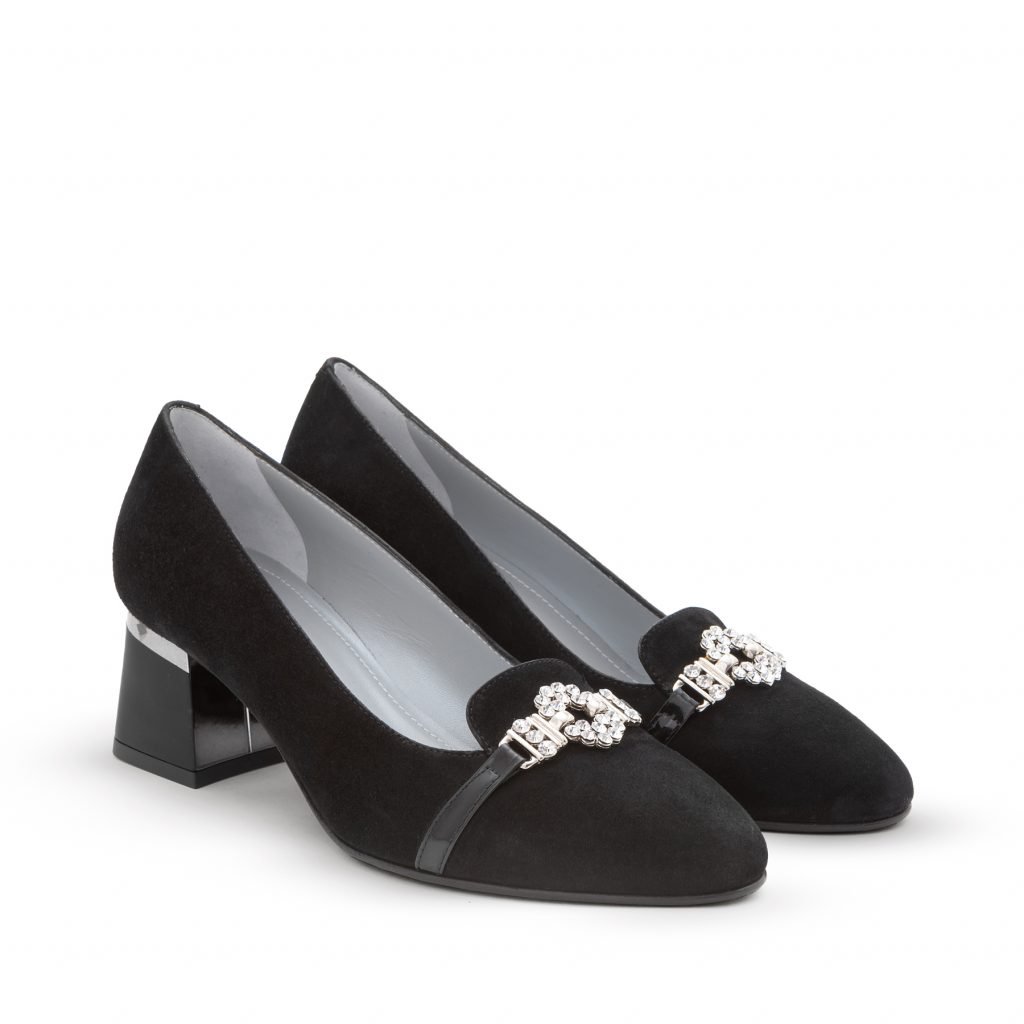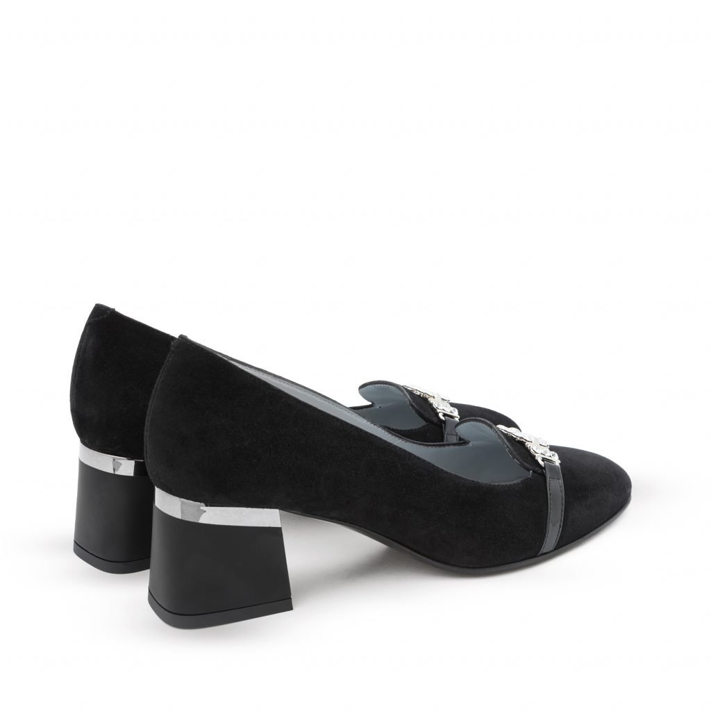 Heel: Heel height 5 cm lacquered black with metallic trim