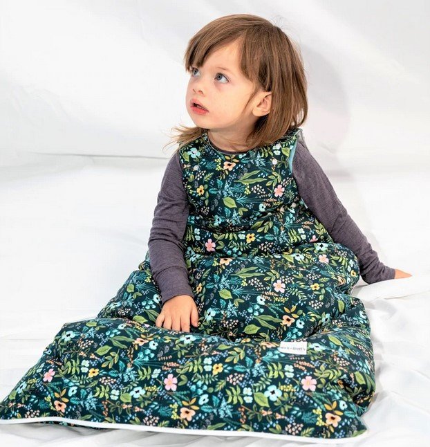 The Baby Snap Sack® with down fill (also known as the Snuggle Down) is a unique one-size warm baby sleep sack. It is equipped with adjustable snaps over the shoulders and across the chest to customize a perfect fit for your growing baby or toddler from 3 months to 3T.