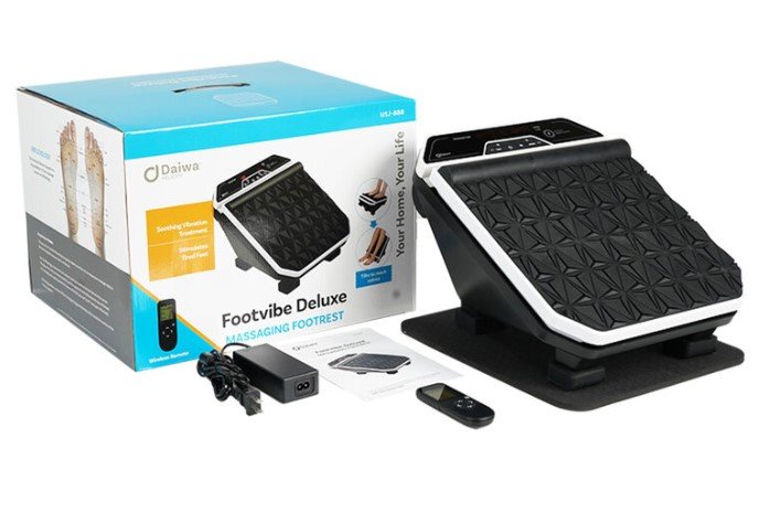 The Footvibe Deluxe Massaging Footrest is a versatile 20-speed vibrating foot massager that soothes and revives tired feet and calves. Footvibe Deluxe is the third model in the popular Footvibe line, with a unique tilting design that can be used from two entirely different angles. It can be used like a footrest to treat the feet to a powerful and effective vibrating massage. The massaging bar at the top is perfect for the arches of your feet or your toes, allowing you to get a complete, satisfying foot massage.