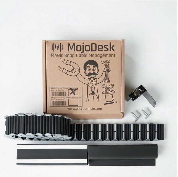The MojoDesk MAGicSnap Cable Chain is the ammunition you need in the fight against tangled evil. This innovative solution snaps into place on the back of the desk leg and uses magnet magic. Snake several cords through and lead them to power and out of view.