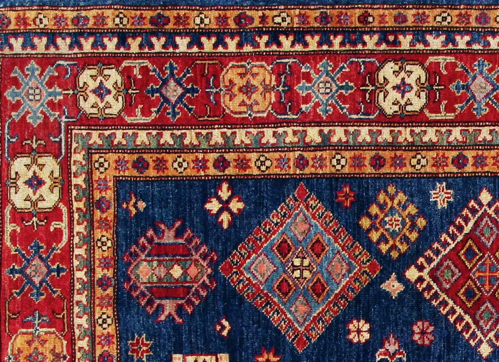 Selma is an oriental rug with eastern design elements. Blue Star is an orthodox blue with red trim.