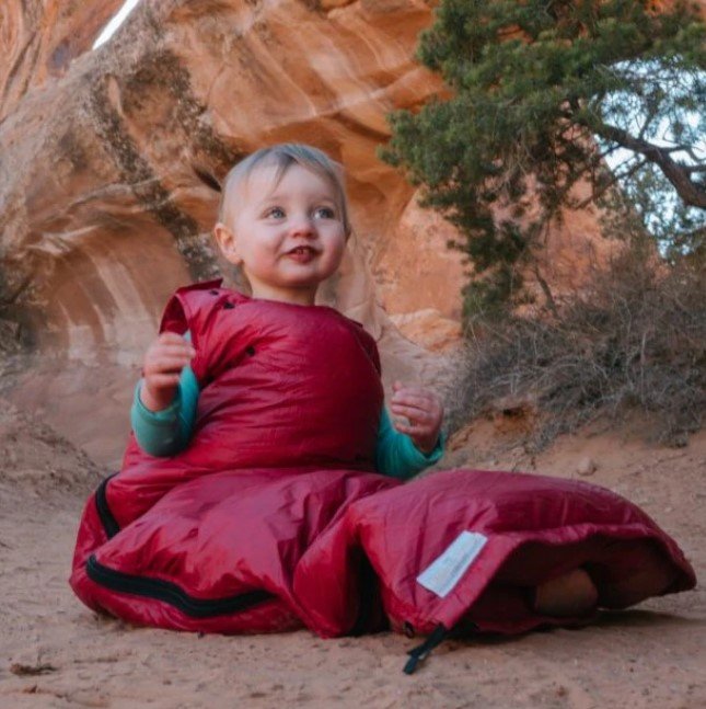 By popular request our outdoor sleeping bags are now available in two sizes: The baby/toddler is adjustable to fit ages 3 months – 3 years. Our larger child size is designed to fit children ages 3 – 7.