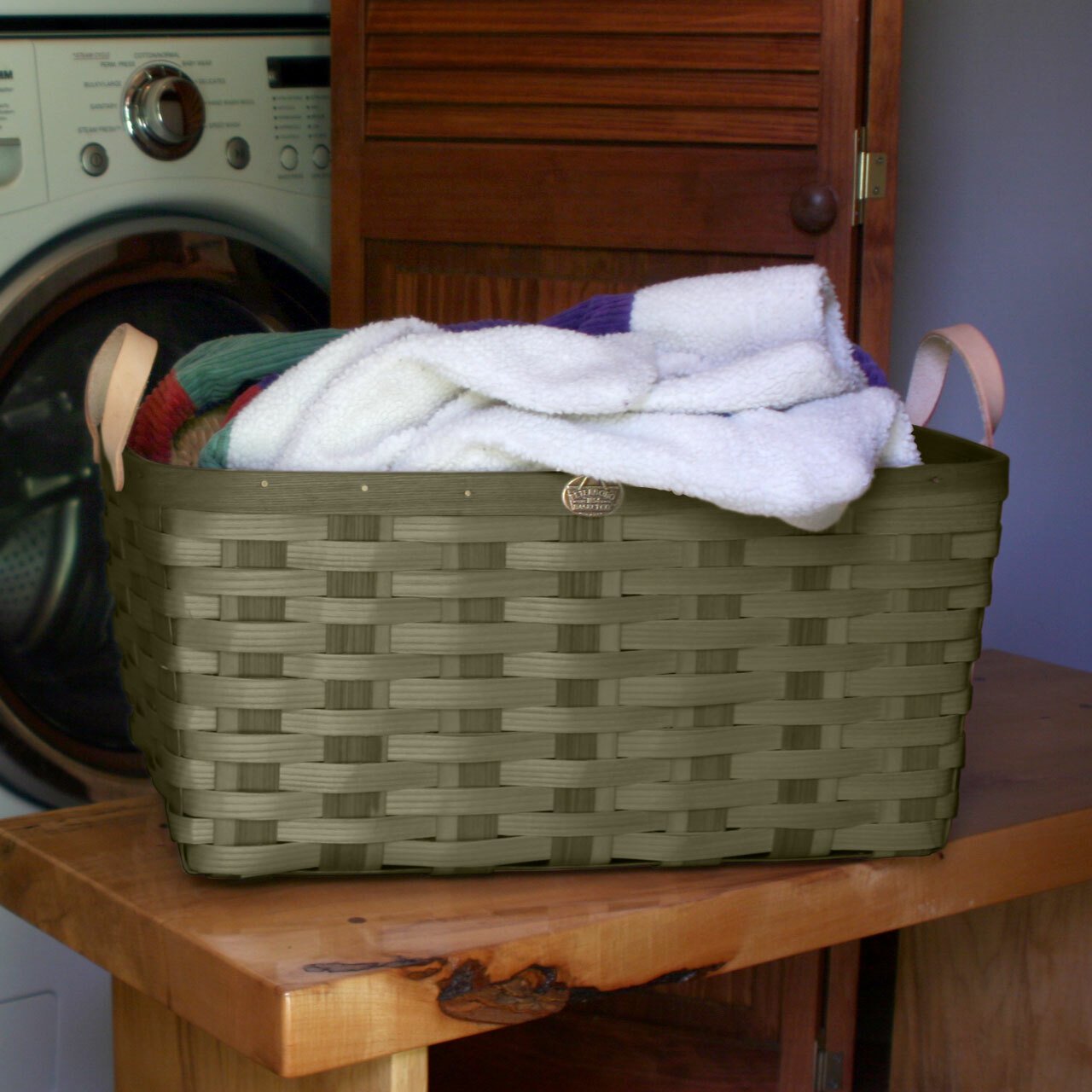 Ash wood weave is naturally resistant to discoloration from moisture and the hardware is brass coated to help prevent rusting. Sturdy leather handles are riveted to the baskets hoop for added strength. You can count on Peterboro Laundry Baskets — and all Peterboro Baskets — to provide years of excellent service, day in, day out.
