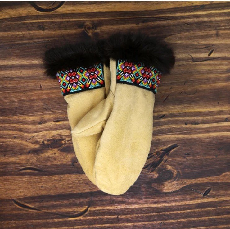 Join us now, it's free!Displaying a gorgeous beadwork band across the wrist, these tan leather mittens are named for Mount Pisgah in Westmore, Vermont. It is located on the east side of Lake Willoughby.