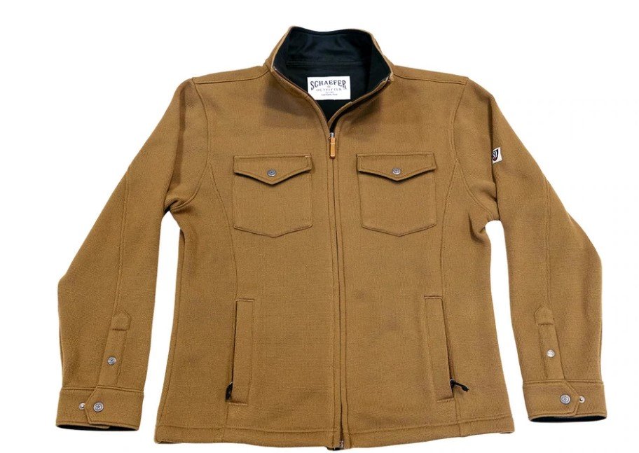 Welcome to the our new Ramshorn Sweater Fleece Jacket, a rugged mid-weight jacket sporting a western pocket front and western yoke back trimmed with Schaefer engraved logo snaps throughout. The greatness not only comes from the warmth and comfort of the sweater knit exterior and brushed interior, but the no-stick, easy-glide lined sleeves and yoke. Comes standard with nickel snap chest pockets, snap cuff/cuff plackets, zippered storm-collared front and zippered handwarmer pockets. Built from performance fleece which is a great stand-alone or valued layer of warmth.