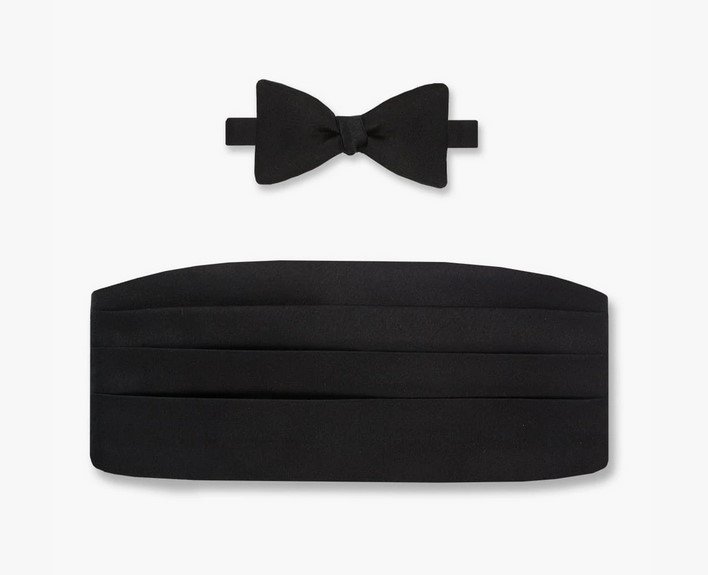 Cut from the finest silk and hand sewn at our neckwear factory with the utmost attention to detail, this elegant bow tie and cummerbund set makes the perfect addition to any formal occasion.