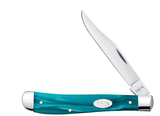 Carry a piece of the open ocean in your pocket with one of our Aqua Kirinite® SparXX™ knives that are wrapped in swirling waves of marine blue. The Slimline Trapper is a thinner version of the Trapper and only includes one blade, the Clip Blade. The Clip blade is commonly used as a multi-purpose blade and is preferred for detail work. The Slimline Trappers are commonly used for skinning and fleshing animals. This knife is constructed with ladder Damascus steel and finished with our crimson bone handle. Comes conveniently packaged in a box. Made in Bradford, PA, USA from domestic and imported materials.