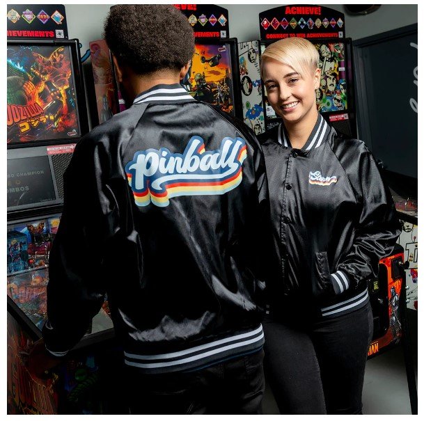 Grab your roller skates and some quarters so you can travel back in time. This retro satin jacket will take you back to the 70’s and 80’s. You will look so styling in this black satin finished jacket with a new Stern look. Get ready to boogie down and do some flipping!