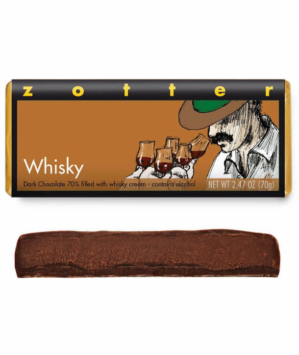 Dark Chocolate 70% filled with whisky cream – contains alcohol